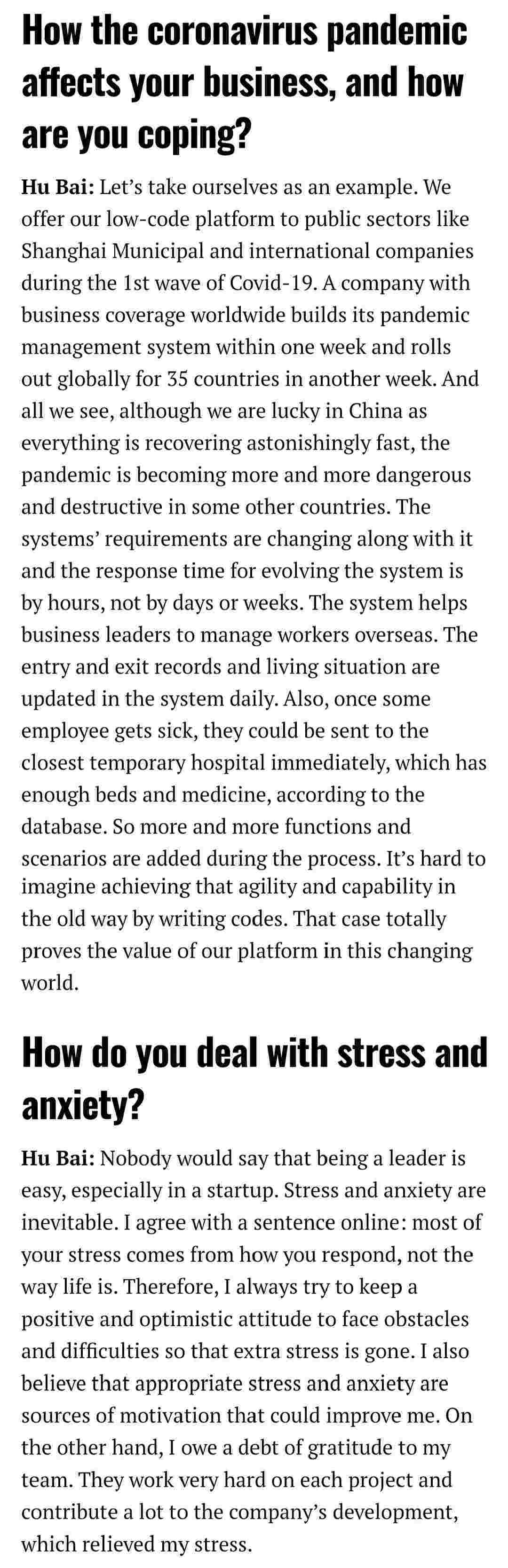 2021年年初,,,爱湃斯科技CEO胡柏受邀接受法媒Startup.info的专访,,与Startup info的读者分享了自己的创业经历、、、、以及低代码平台NO钱包的创新之处。。