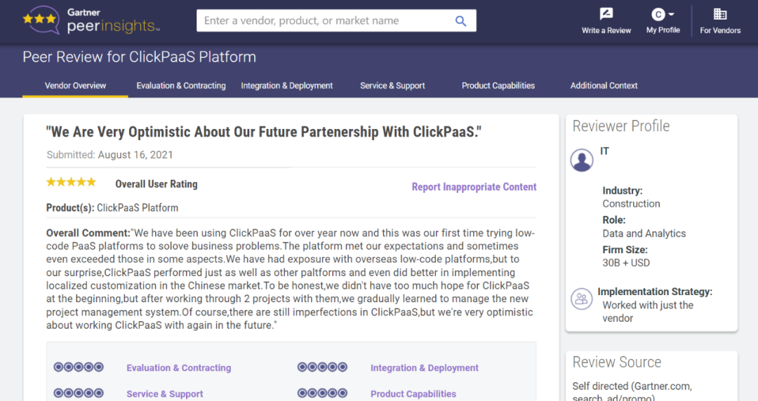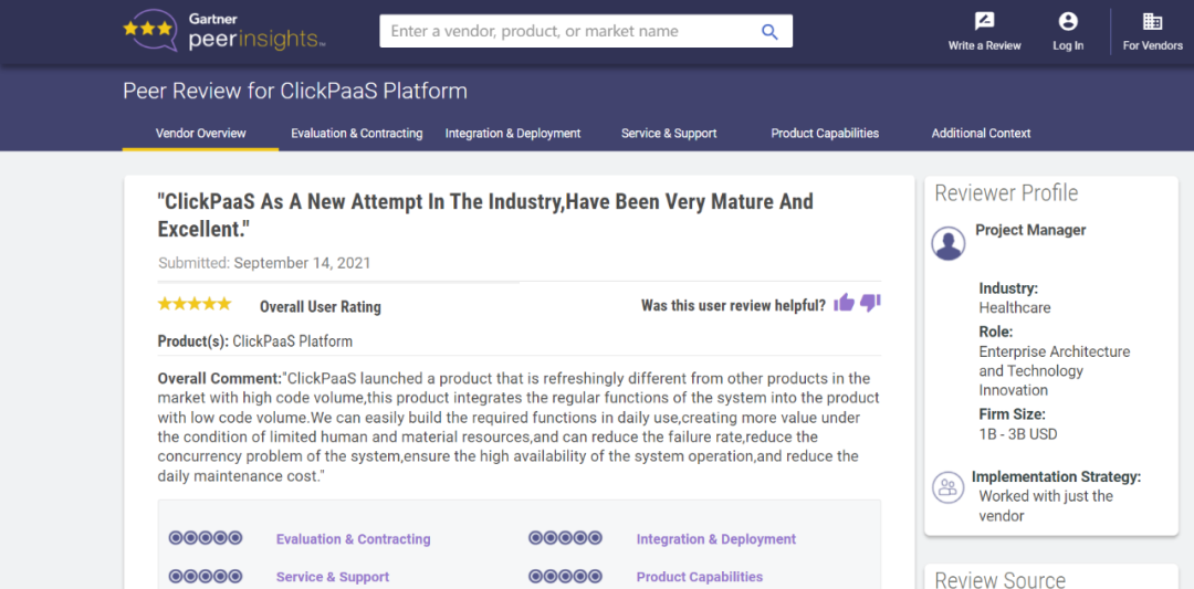 Tips:::【Peer Insights】——用户对企业IT产品和服务发布真实评价的平台。。目前已有355个市场,,,255,000条经过验证的评价。。。每一条评价Gartner会针对参评企业营收规模及参评人员信息做验证、、、评价内容做多维核实。。